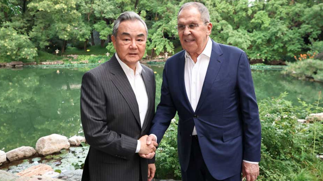7月15日当天,中方在北京接见了上合9国外长,但唯独与俄外长拉夫罗夫举行了单独的双边会谈。